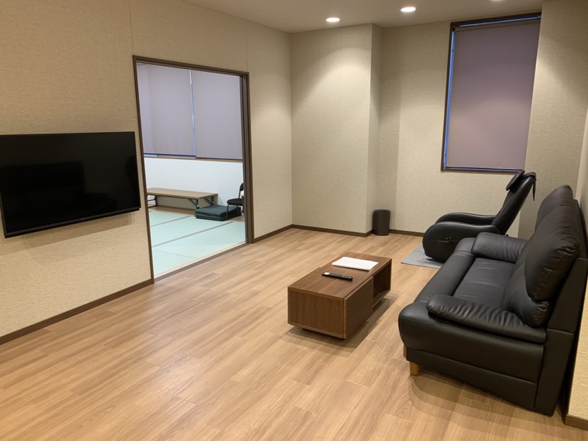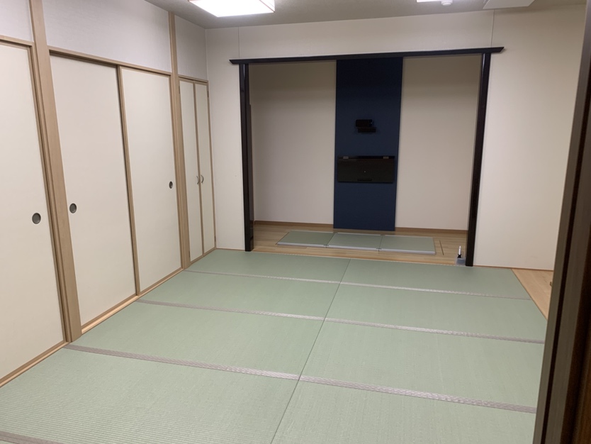 1階に家族葬専用施設「プライベートホール縁(ゆかり)」があり、2階には葬儀式場と親族控室がございます。2階の葬儀式場では式場内を可動式のパーテーションで仕切ることができますので、家族葬や小規模葬、一般的なご葬儀を執り行えます。