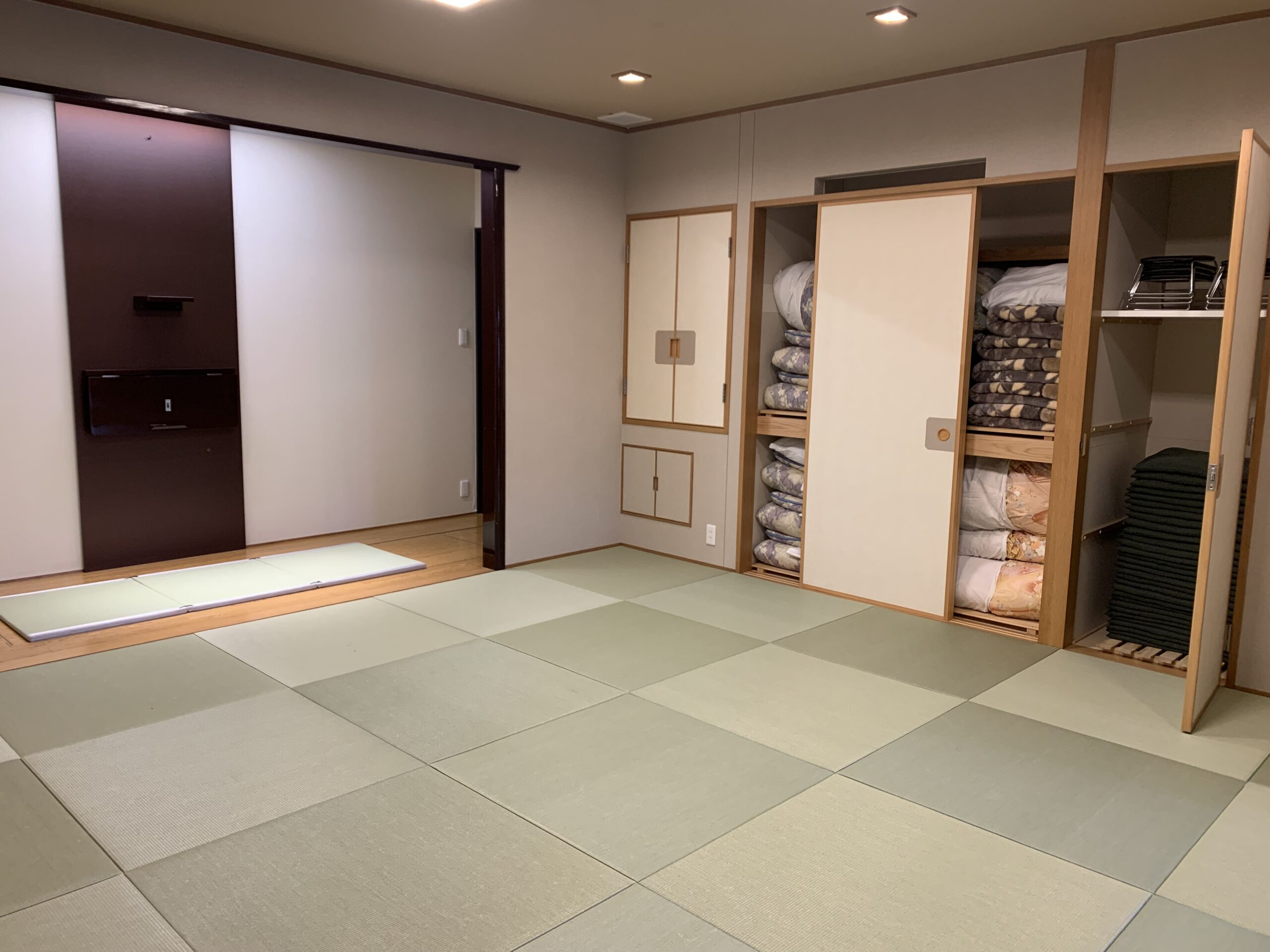 平屋建ての当会館は、葬儀式場から親族控室も近く1フロアですべてが完結いたします。1式場のみのため、落ち着いた雰囲気で葬儀を執り行うことができ、家族葬から一般葬まで参列者の人数に応じて広さを変更することが可能な式場を完備しております。
